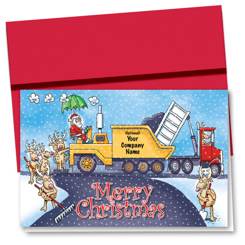 Send a fun Christmas message this year with a customizable construction Christmas card. Feature your business name on the front and a chosen message inside.