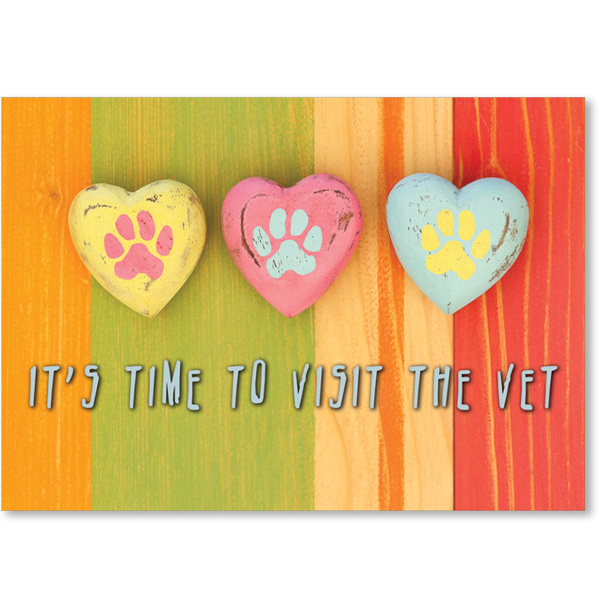 Send a friendly reminder about a pet's upcoming vet appointment with an appointment reminder card. Personalize it with your clinic name and a message. Individual postcard size is 6" x 4 1/4"